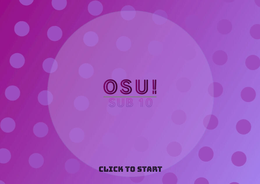 OSU!Sub10 is a challenge project developed by me as a test to see what I could throw together off the top of my head without many optimizations and polish, in under 10 hours. Everything from the circle and slider looks to the mechanics and beatmaps were constructed by me. It is very hard to showcase a rhythm game with just a paragraph and images, so please checkout the github repository to try it yourself! Repo linkI of course do not claim any of the songs or thumbnail art used as my own and credits to those are given to the respective artists. The credit for the original idea of OSU! goes to its creators; a link to OSU! is given in the github repository for this project.